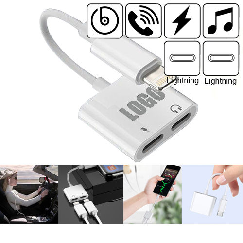 AD12 Adaptateur lightning-lightning+lightning, Longueur : 13 cm, couleur : blanc, matériel extérieur : ABS, matériel intérieur : et pluscuivre, compatibilité 1phone7 et plus, impression de votre logo par sérigraphie